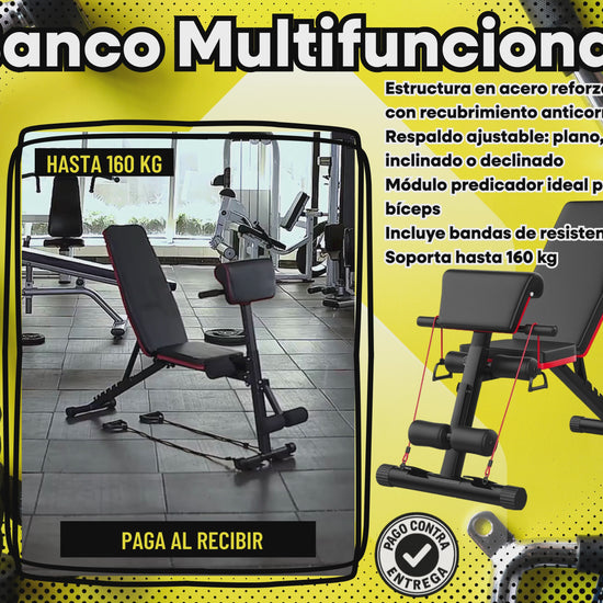 Con el Banco Declinable 3 en 1 con Rack Ajustable tendrás la versatilidad de un gimnasio completo en una sola máquina compacta y segura. Ideal para entrenar pecho, brazos, abdomen, espalda y hombros, sin ocupar mucho espacio.