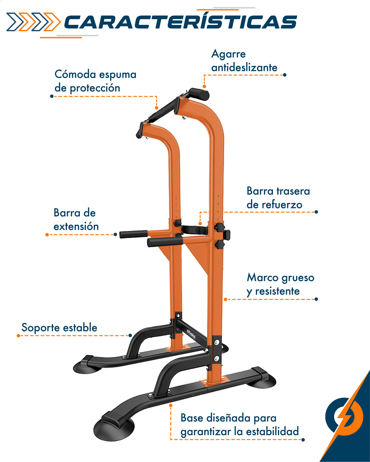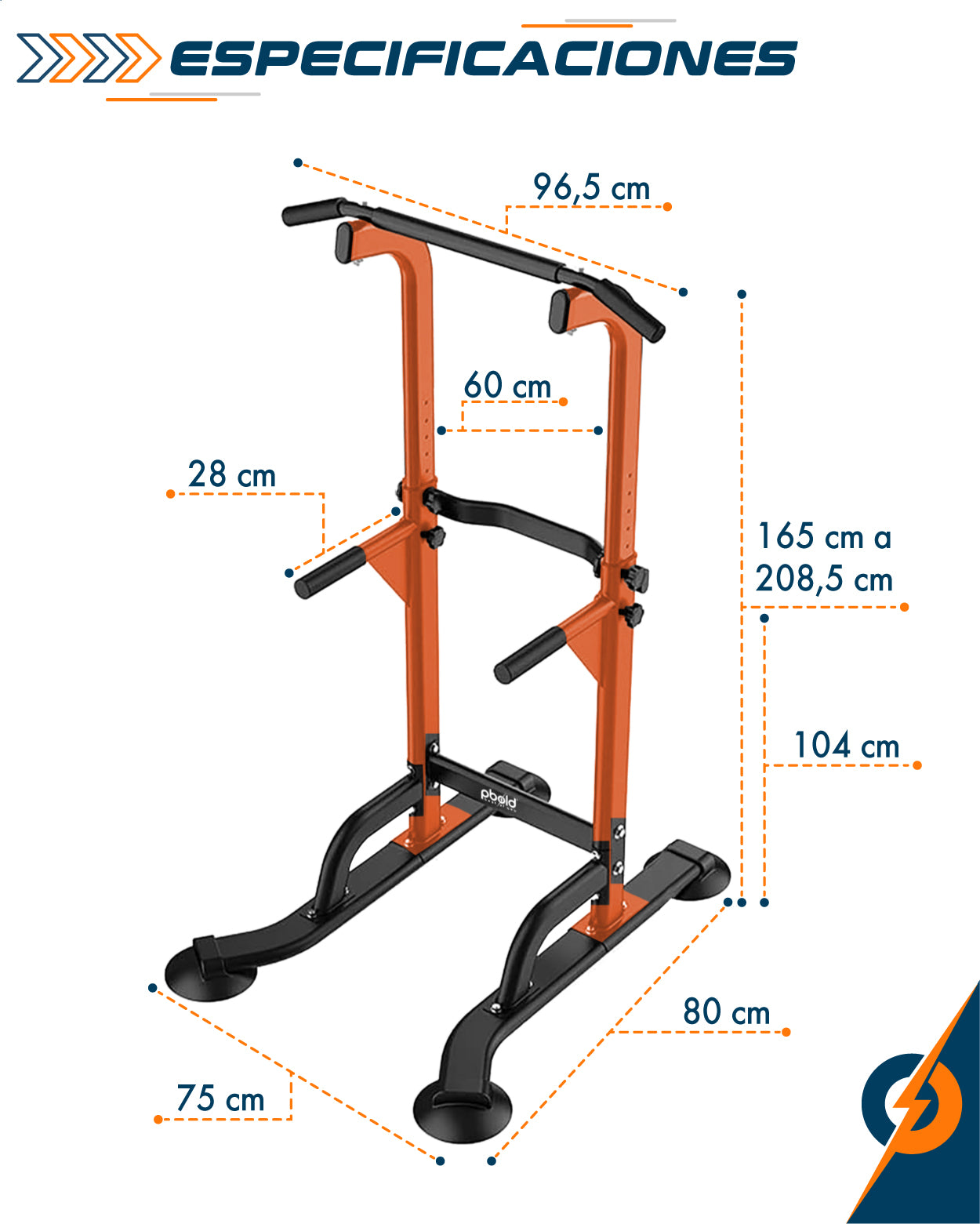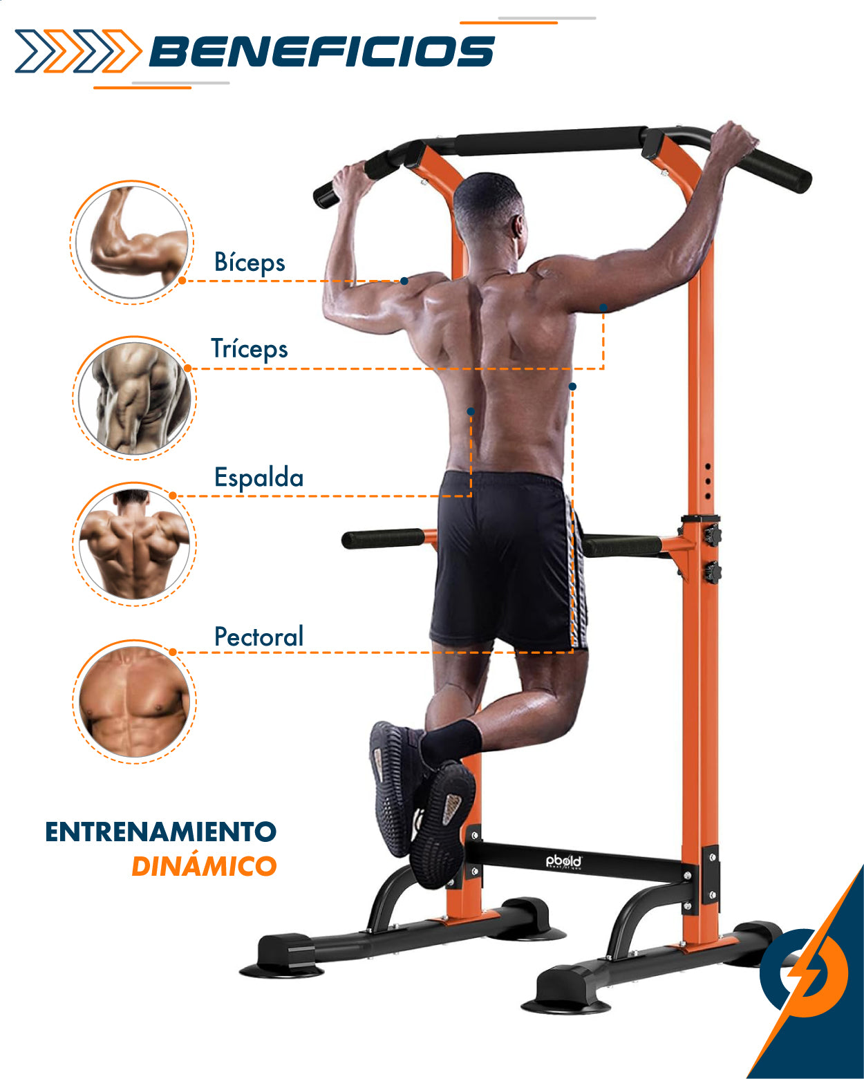 • Múltiples ejercicios en un solo equipo: Realiza dominadas, fondos, levantamientos de pierna, y mucho más para fortalecer espalda, pecho, brazos, abdomen, y core.